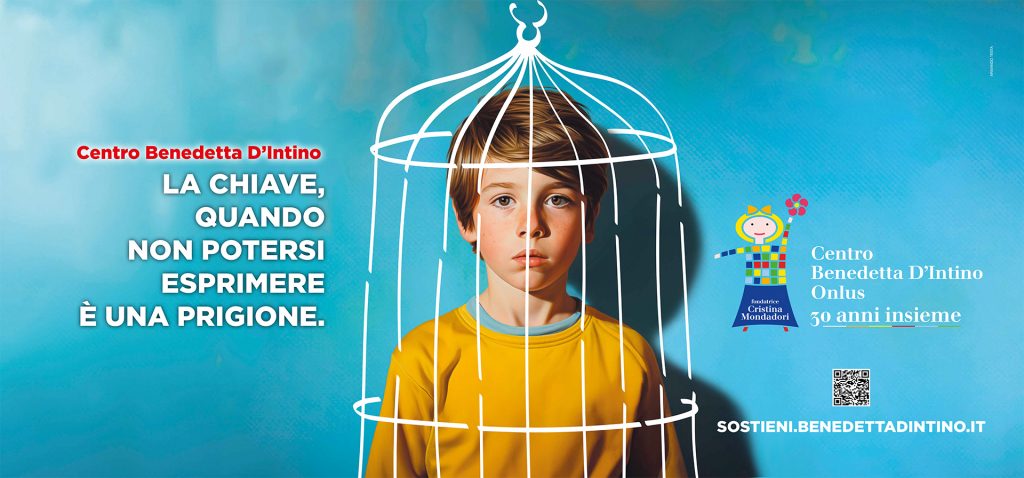 Born in 1994 from Cristina Mondadori’s dream in memory of her granddaughter Benedetta, the Benedetta D’Intino Center works to help children with severe communication disabilities, and on the occasion of its thirtieth anniversary it has entrusted Armando Testa with the study of a new campaign. A child who cannot say – neither with words nor with body language – mommy, I’m hungry, I’m happy, it hurts, is not a child who does not have thoughts, emotions, fears, dreams… he just does not know how to let them out, he cannot. His disability keeps him locked in a prison of incommunicability, and the work of the Center is the key that finally opens that cage, freeing for the first time thoughts and reactions that sometimes not even the parents themselves imagined existed. Three subjects for print, billboards and digital, and a film produced by AT Studios try to summarize the complex universe of AAC, revealing that, for each of those children, finally being able to express themselves is truly life.